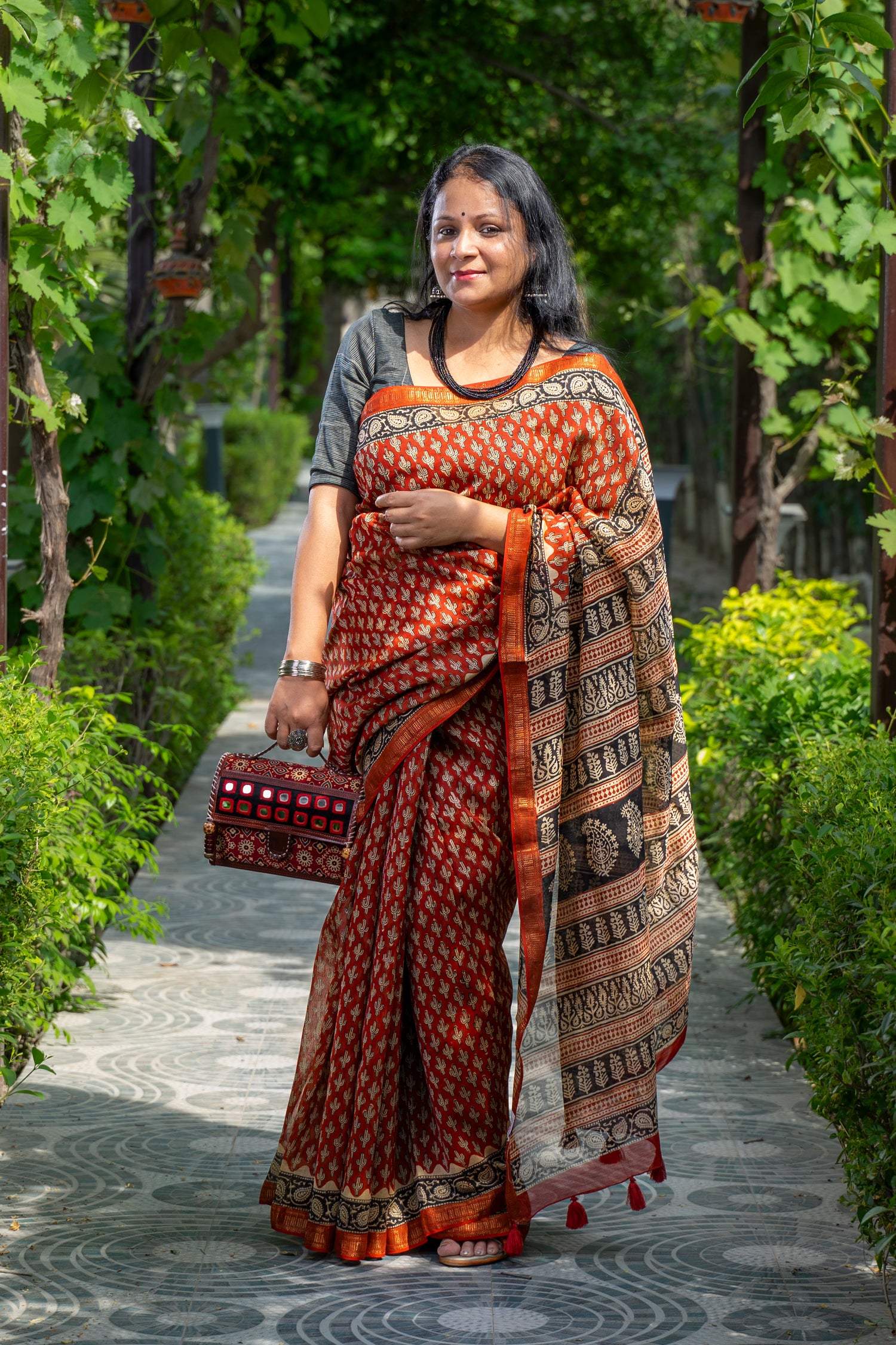 RED PAISLEY AJRAKH BLOCK PRINT SARI