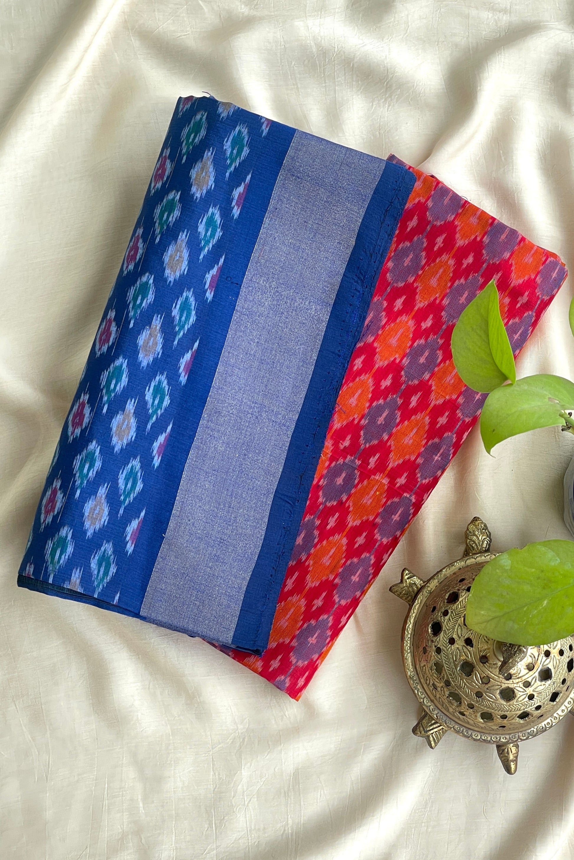 RED AND BLUE SINGLE IKKAT SILK COTTON SUIT